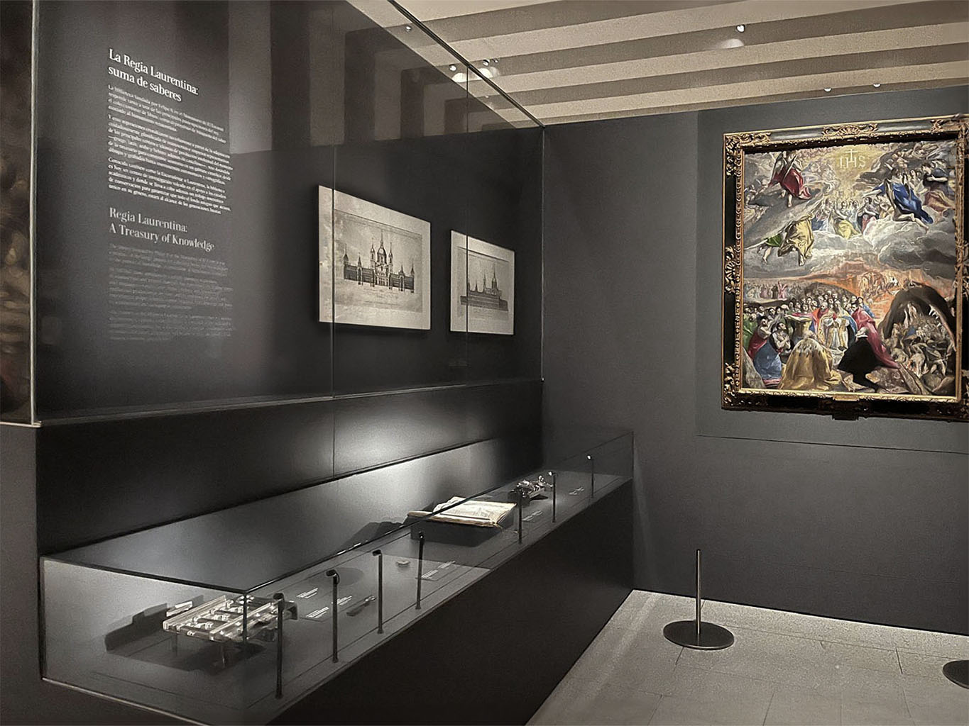 Diseño de renovación expositiva de vitrina, obra y montaje de vitrina con obras relativas al Real Monasterio de San Lorenzo de Escorial